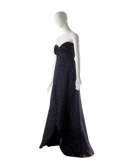 Dinner dress and jacket in black silk with beaded palm tree motif