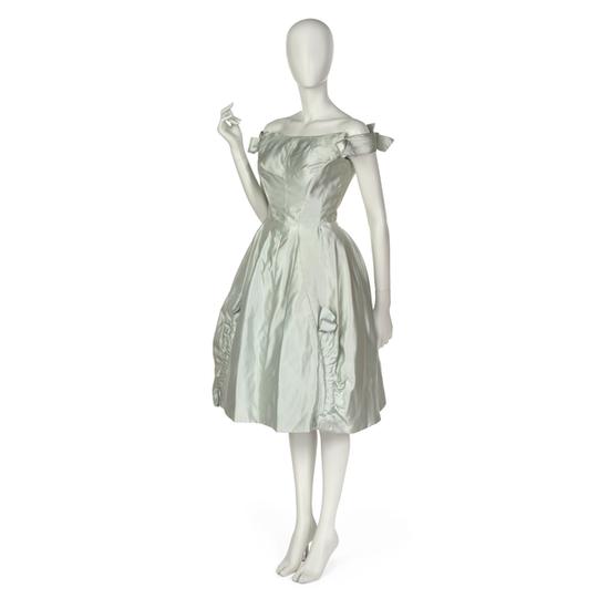 Dinner dress in kelly green slipper satin