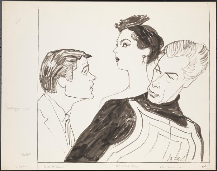 [Tamara Geva as Lina Szczepanowska, Roddy McDowall as Bentley Summerhays and William Redfield as Johnny Tarleton in "Misalliance".]