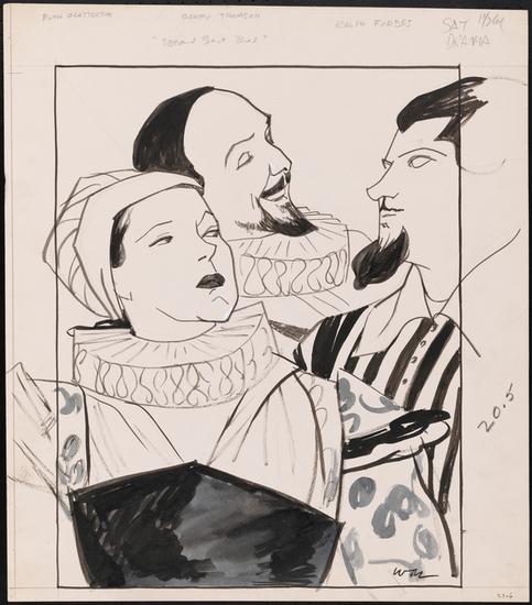 [Barry Thomson as Will Shakespeare, Ralph Forbes as Lewis Poggs and Ruth Chatterton as Anne Hathaway Shakespeare in "Second Best Bed".]