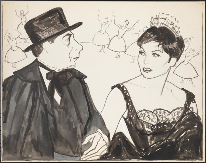 [Jeanmaire as Lisette Gervais and David Atkinson Clyde Hallam in "The Girl in Pink Tights".]