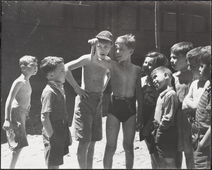 Union Settlement House, Summer Camp, Kitchen Detail, Peeling Potatoes and Story Time.