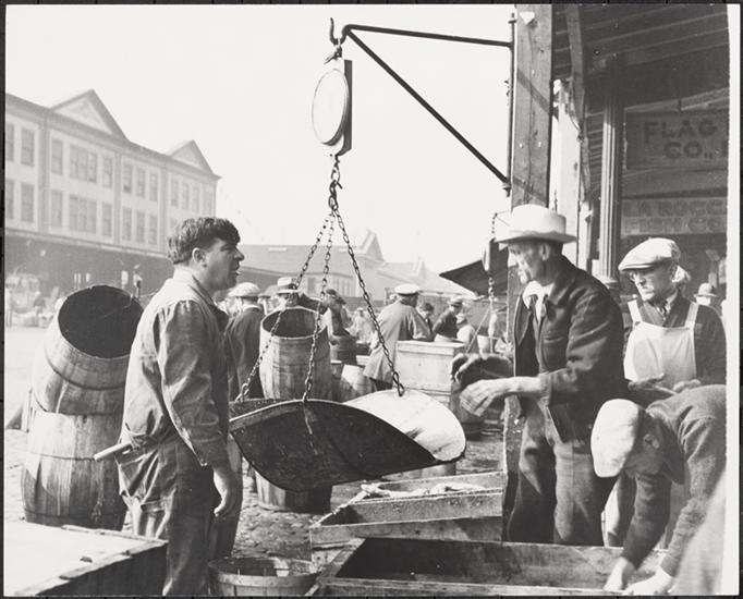 Fulton Fish Market: Weighing Cod.