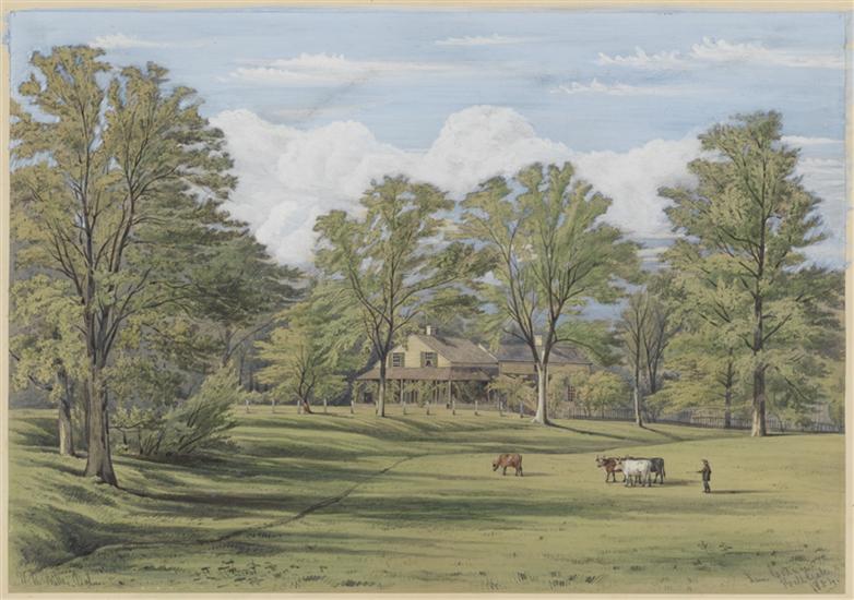 [Hell Gate Bridge from a window.]