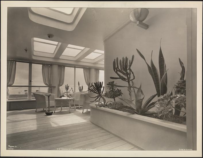 S.S. "Nieuw Amsterdam", 5th Street, Hoboken, N.J., Cabin Class, Solarium.