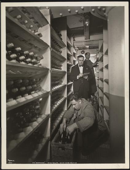 French Line, S.S. "Normandie", Wine Cellar, Champagne Section.