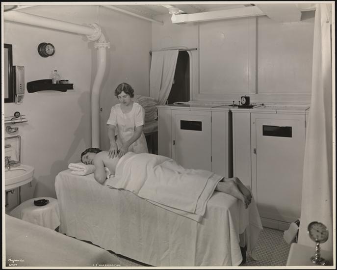 United States Lines, S.S. "[Washington]" Cabin Class, Interior, Massage Room, Light Cabinet.