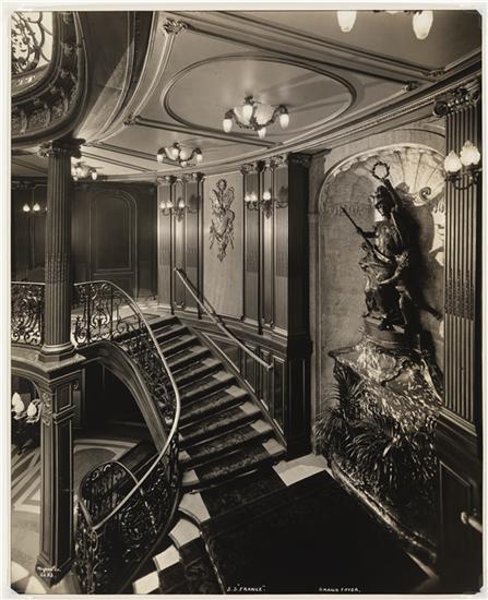 French Line, S.S. "France", Interior, Staircase and Grand Foyer.