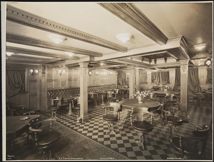 Lloyd Sabaudo Line, S.S. "Conte Biancamano" Pier 95 N.R., Second Class Smoking Room.