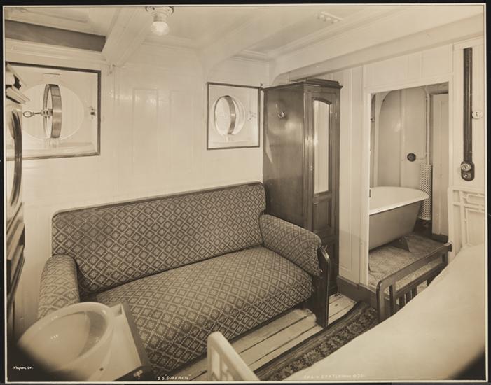 French Line, S.S. "Suffren" Pier 57 North River, Third Class, Interior, 2 Berths Stateroom #638.