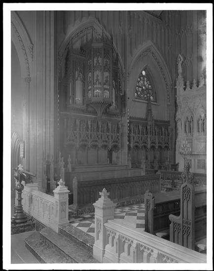 209 Broadway. Trinity Church. Interior, chancel detail at altar