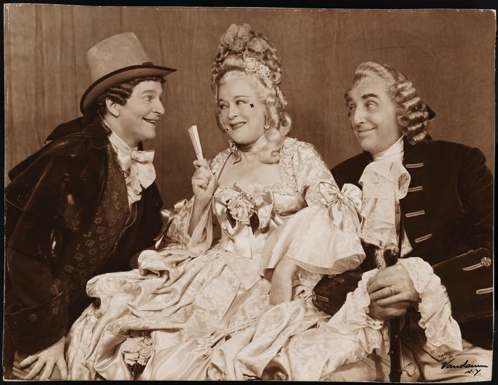 [Bobby Clark as Bob Acres, Mary Boland as Mrs. Malaprop (Aunt to Lydia) and Walter Hampden as Sir Anthony Absolute in "The Rivals".]