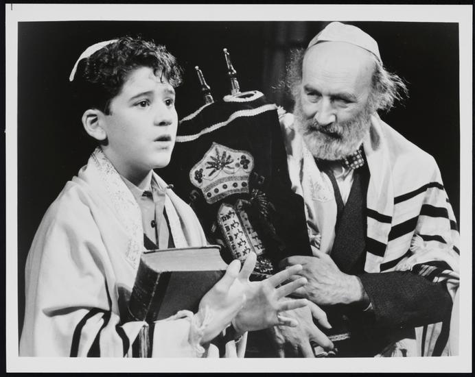 [Sam Schacht as Moses Yanover, Sol Frieder as Ardenshensky/Ukrainian Priest and Marcia Jean Kurtz as Esther Yanover in "Today, I Am a Fountain Pen".]