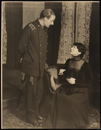 [Paul Leyssac as Kulygin and Eva Le Gallienne as Masha in "The Three Sisters".]
