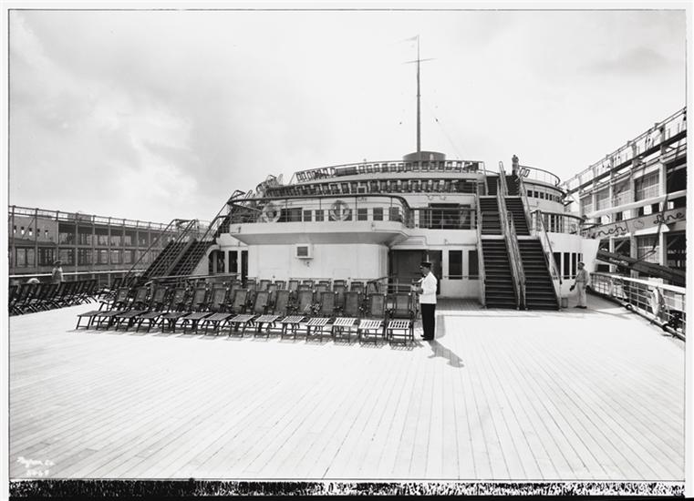 French Line, S.S. "Normandie", Pier #88 N.R., Tourist Class, Deck Promenade.