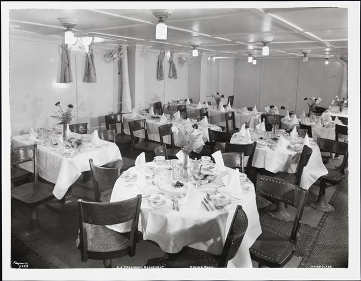 [S.S. "President Roosevelt", Dining Room, Third Class.]