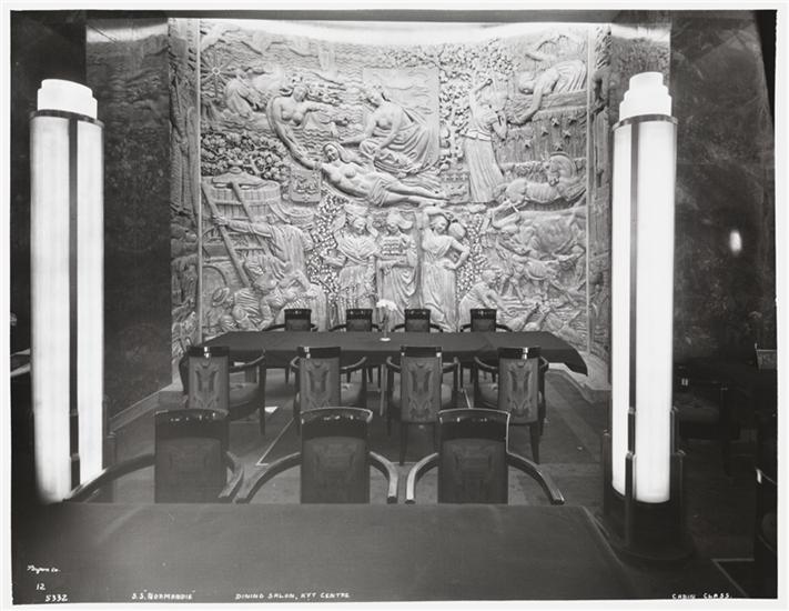 French Line, S.S. "Normandie", Cabin Cl., Panel in Dining Salon, Midship Aft.