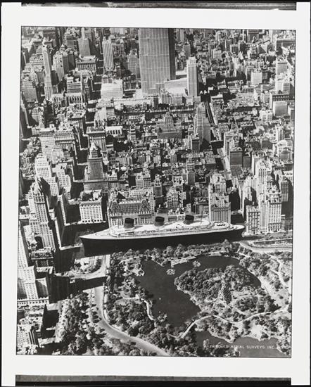[French Line, S.S. "Normandie", Aerial View.]