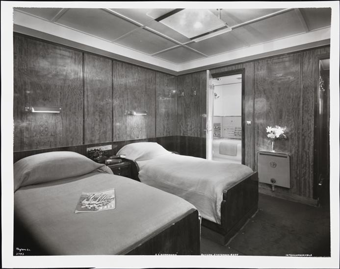 French Line, S.S. "Normandie", Interior, Interchangeable Cl. Outside 2 Bed Stateroom #397.