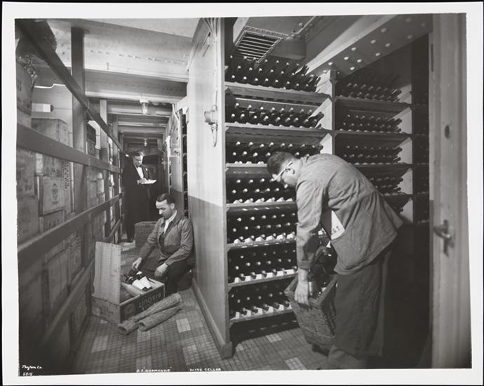French Line, S.S. "Normandie", Wine Cellar, White Wine Section.