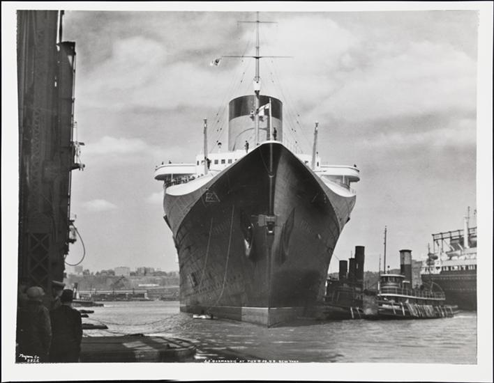 [S.S. "Normandie", at the French Line Pier, New York.]