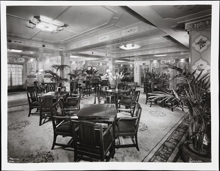 United States Lines, S.S. "Washington", Cabin Class, Interior, Palm Court (Upright).