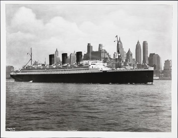 French Line, S.S. "Paris", Passing the Statue of Liberty.