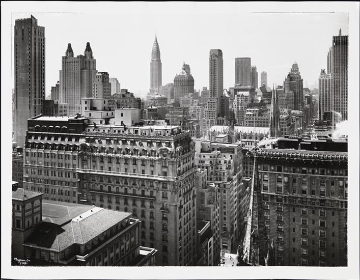 Night Scene, S.E. from 515 Mad. Ave, Gen. Electric, Waldorf Astoria, Chrysler, Chanin, N.Y. Central Bldg.