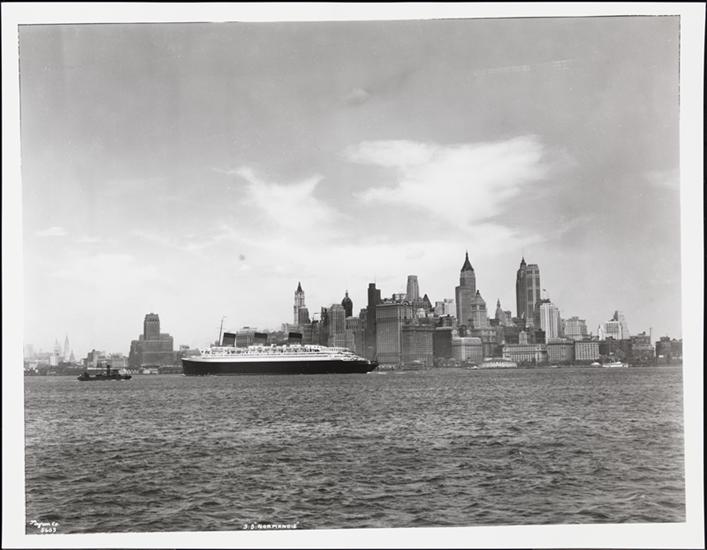 [S.S. "Normandie", at the French Line Pier, New York.]