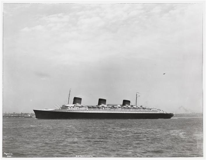 [S.S. "Normandie", Nearing Her Pier, New York.]
