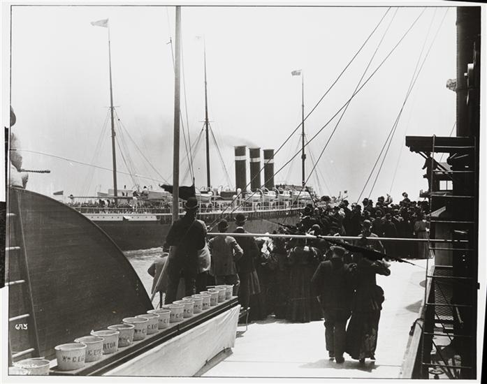 American Line, S.S. "New York", Group Waving to Passengers on Boat.