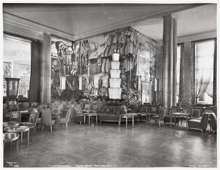 French Line, S.S. "Normandie", Cabin Cl., Panel in Grand Salon, Port Side Aft.