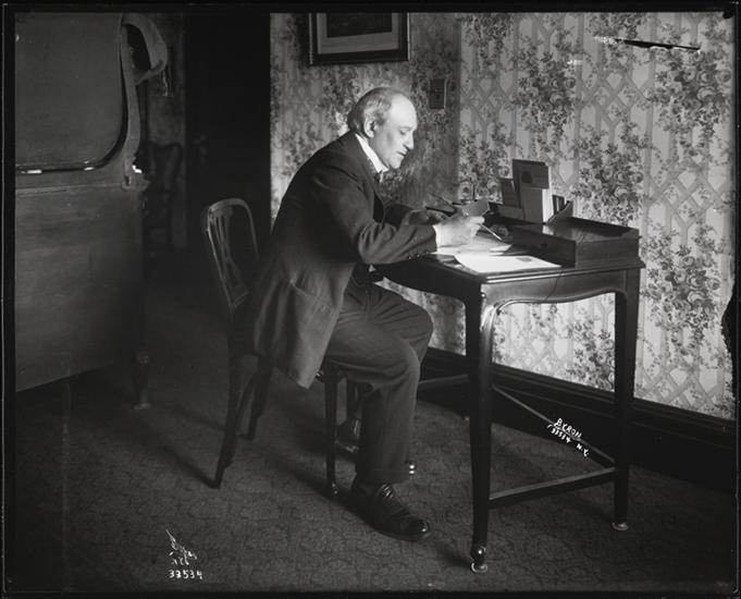 [Man writing at desk.]