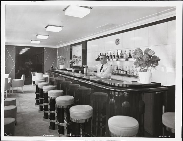 [S.S. "Normandie", the Bar, Third Class.]