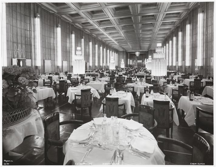 [S.S. "Normandie", Dining Salon, Forward, Port Side, Cabin Class.]