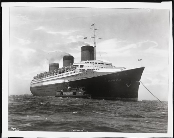 [S.S. "Normandie", at the French Line Pier, New York.]