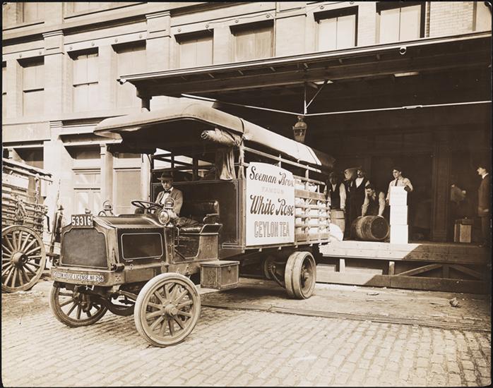 "c. 1910-11 Packard 2 ton grocery van with 1911 NY plates"" and "rejected" pencilled on verso.