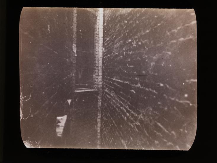 Arch under the first rear tenement at 55 Baxter Street leading to the second rear, with stairs up which Vincenzo Nino went to murder his wife in 1895. House believed to be haunted.