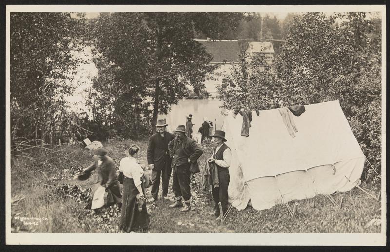 [Pitched tents in the woods.]