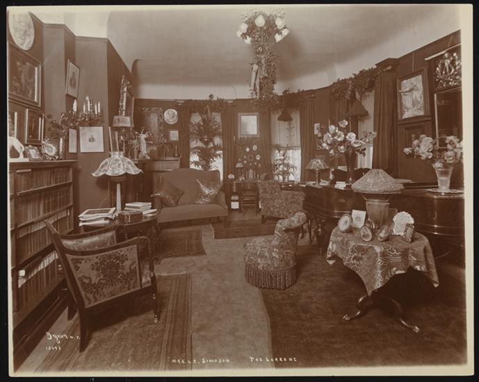 Description The living room of Mrs. L.C. Simpson's residence at the Hotel Lorraine.