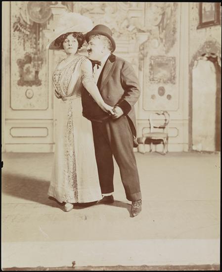 A scene from Weber's Burlesque of the Henry W. Savage production of Lehar's "The Merry Widow" and a production of "The Devil," presented at Webers Theatre in 1909.