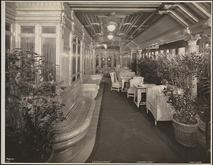 Lloyd Sabaudo Line, S.S. "Conte Rosso", Col Serrati, Interior, Veranda Cafe.