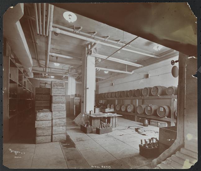 Interior of the rathskellar/wine cellar at the Hotel Astor, Broadway and 45th Street.