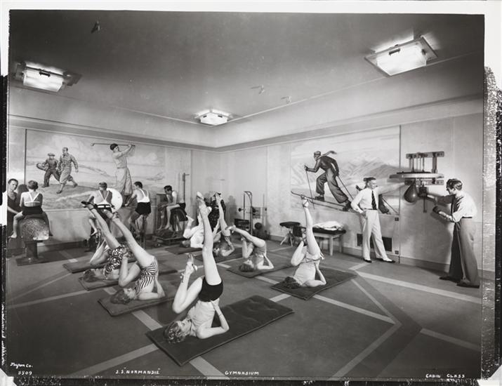 French Line, S.S. "Normandie", Pier #88 N.R., Tourist Class, Interior, Gymnasium.