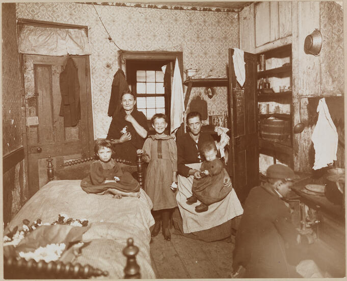 Lodgers in a crowded Bayard Street tenement - "Five cents a spot."