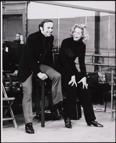 [Lauren Bacall as Stephanie and Robert Moore as Harvey in "Cactus Flower".]
