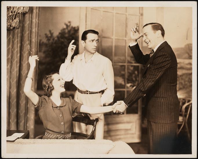 [Donald Cook as Tony Kenyon, Gertrude Lawrence as Lydia Kenyon and Glenn Anders as Bill Blake in "Skylark".]