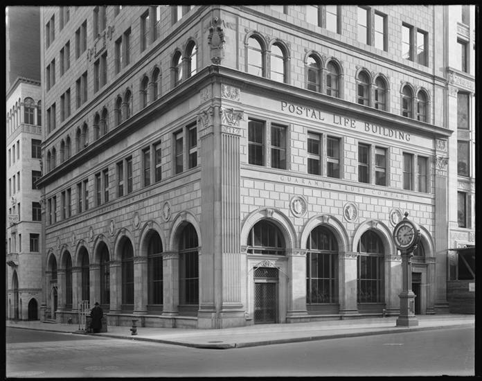5th Avenue and 43rd Street. Postal Life Building, general exterior.