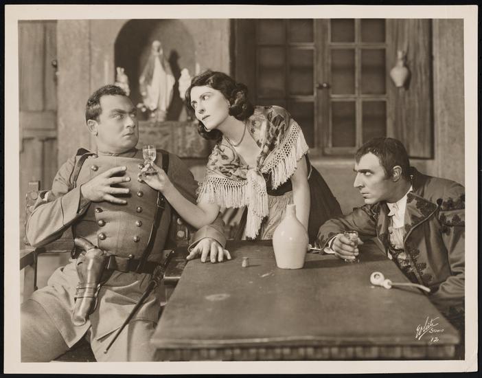 [Curtis Cooksey as A Soldier, Mary Nash as A Woman and José Ruben as A Man in "Thy Name is Woman".]