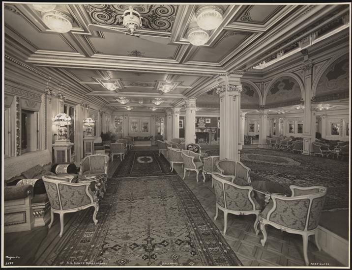 Lloyd Sabaudo Line, S.S. "Conte Biancamano" Pier 95 N.R., First Class Interior, Ballroom.